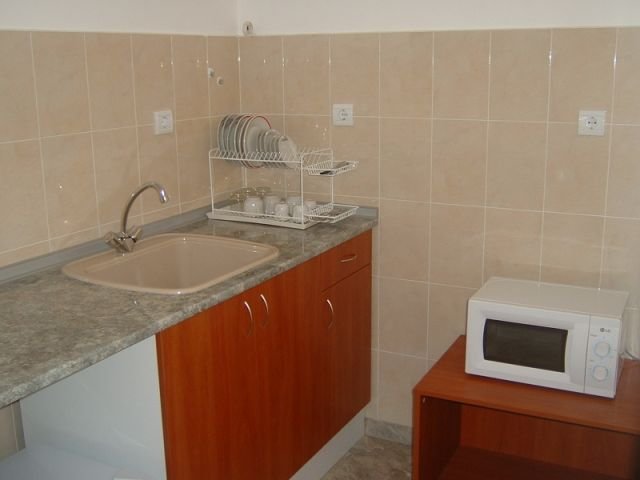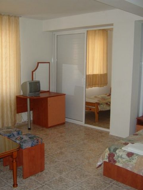 Pansion "Pandora" ** To je nova zgrada, koja ima 3 sprata i se nalazi u novom delu grada, na 200 m od plaže. Poseduje 4 dvokrevetne sobe i 6 trokrevetnih soba, opremljene TV-om, minibarom, kupatilom (WC, tuš), balkonom; 3 apartmana za 3 osobe, koji imaju spavaću sobu sa TV-om, potpuno opremljenu kuhinju, balkon, kupatilo (WC, tuš); 2 apartmana za 4 osobe (2 prelazne sobe) - opremljeni TV-om, minibarom, balkonom , kupatilom(WC, tuš). Ovaj apartman je vrlo udoban za porodicu sa dvoje male dece.